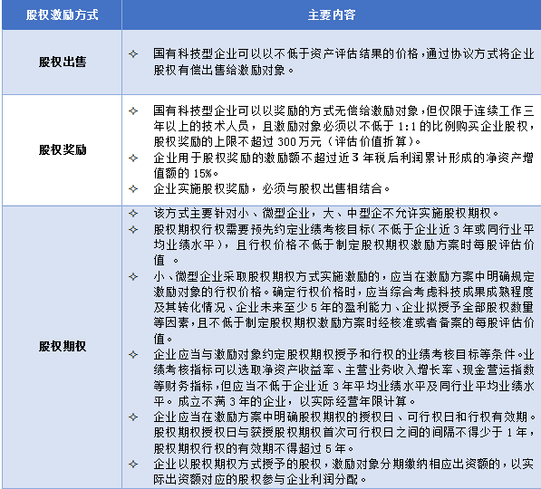 根據(jù)《關(guān)于印發(fā)國(guó)有科技型企業(yè)股權(quán)和分紅激勵(lì)暫行辦法的通知》(財(cái)資【2014】4號(hào))一文,對(duì)國(guó)有科技型企業(yè)有以下說(shuō)明:“本辦法所稱(chēng)股權(quán)激勵(lì),是指國(guó)有科技型企業(yè)以本企業(yè)股權(quán)為標(biāo)的,采取股權(quán)出售、股權(quán)獎(jiǎng)勵(lì)、股權(quán)期權(quán)等方式,對(duì)企業(yè)重要技術(shù)人員和經(jīng)營(yíng)管理人員實(shí)施激勵(lì)的行為。”