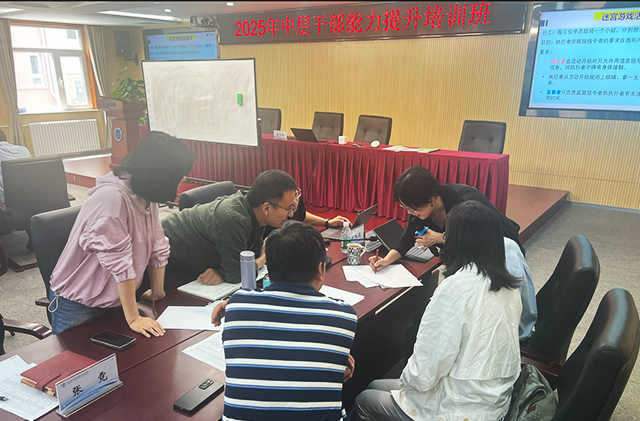 在第一天的課程中,崔教授以“戰(zhàn)略思維-組織協(xié)調(diào)-激勵(lì)賦能-自我迭代”四維領(lǐng)導(dǎo)力模型為框架,結(jié)合戰(zhàn)略地圖、OKR等工具,解析目標(biāo)分解與過程管控方法。通過“情境領(lǐng)導(dǎo)力”工具對(duì)員工發(fā)展階段進(jìn)行診斷,配套指令型、輔導(dǎo)型等差異化激勵(lì)策略,并引入OJT工作指導(dǎo)法與BIA反饋模型,構(gòu)建“目標(biāo)可視化-過程管控-結(jié)果閉環(huán)”的執(zhí)行鏈條。沙盤推演環(huán)節(jié)模擬真實(shí)管理場(chǎng)景,學(xué)員分組完成危機(jī)決策,在實(shí)戰(zhàn)中鍛煉資源整合與團(tuán)隊(duì)協(xié)同能力。
