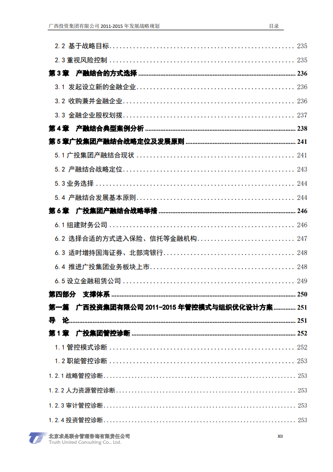 第一部分為廣投集團(tuán)的診斷與回顧,第二部分為廣投集團(tuán)的總體戰(zhàn)略規(guī)劃,第三部分為廣投集團(tuán)專題規(guī)劃;第四部分為廣投集團(tuán)在新戰(zhàn)略下的支撐體系的設(shè)計(jì)。