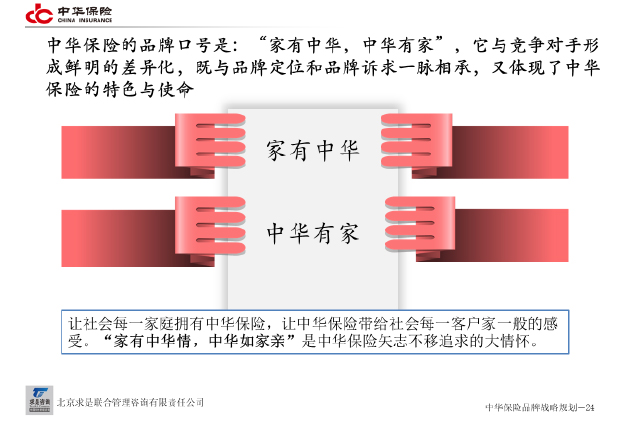 1. 通過企業(yè)品牌與文化管理綜合診斷,基于“選中華,得安心”的品牌定位,提出“家有中華,中華有家”的品牌理念與口號。