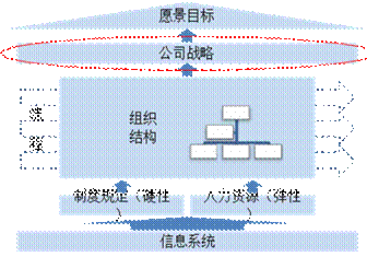 戰(zhàn)略遵從于公司的愿景和目標(biāo),組織結(jié)構(gòu)是根據(jù)公司戰(zhàn)略而設(shè)計(jì)的,而組織結(jié)構(gòu)的良好運(yùn)行需要有效的流程來貫穿,同時(shí)為了運(yùn)行有序,需要制定一系列的制度來硬性規(guī)定組織運(yùn)行的秩序,人力資源是組織運(yùn)行的源動(dòng)力,相對(duì)于制度來講,人力資源的管理是具有彈性的,涉及到如何激勵(lì)的問題,最后,整個(gè)組織的有效運(yùn)行離不開良好的信息交流和溝通。