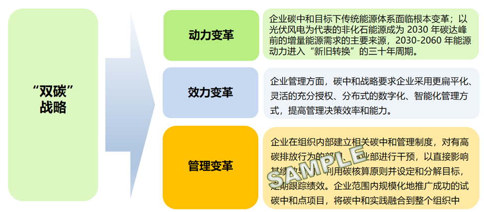 “雙碳”戰(zhàn)略框架下,企業(yè)應(yīng)將關(guān)鍵資源能力體系、業(yè)務(wù)運營體系、碳中和科技、運營管理、碳資產(chǎn)管理等生產(chǎn)要素融入企業(yè)價值鏈, 聚焦企業(yè)增量增長空間,重塑商業(yè)模式,打造競爭優(yōu)勢,最終實現(xiàn)企業(yè)發(fā)展戰(zhàn)略目標。